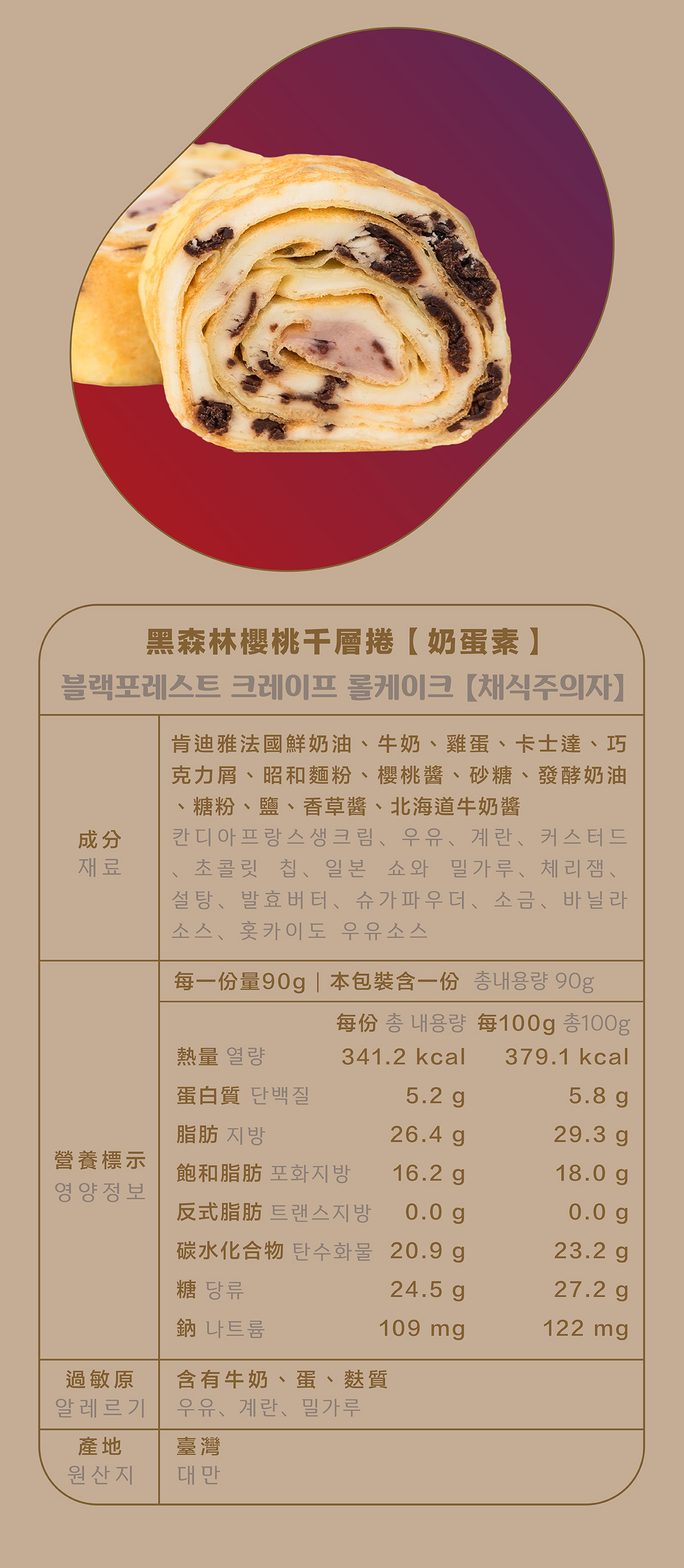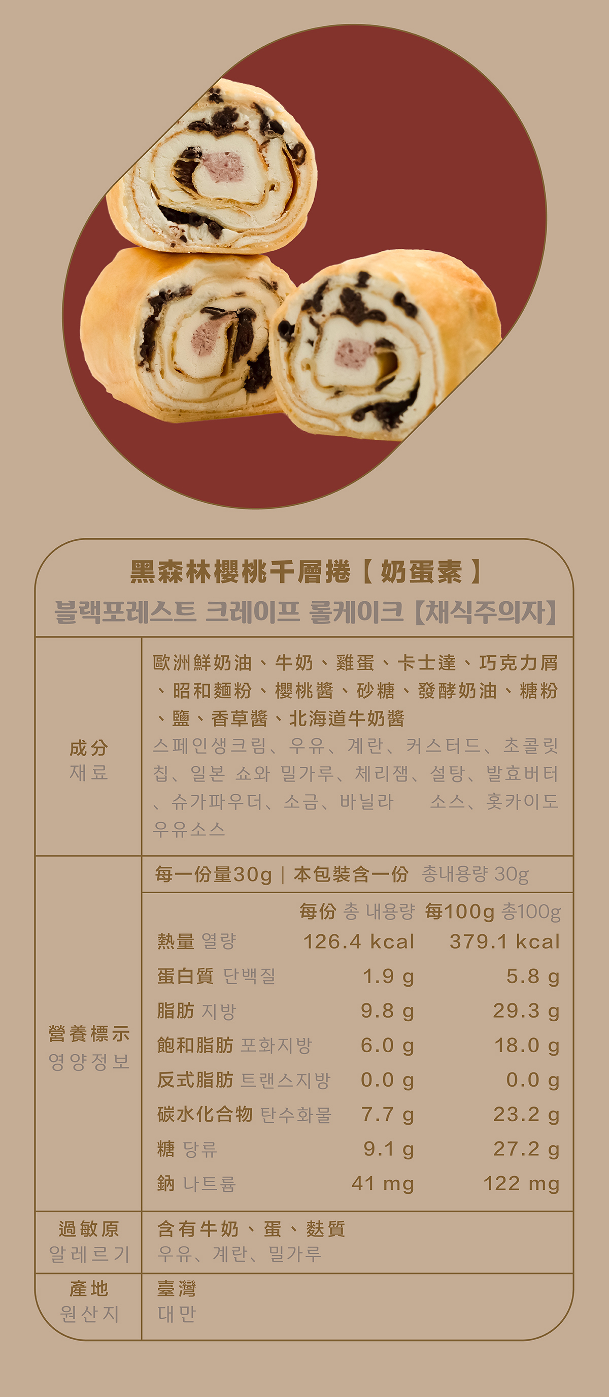 經典黑森林櫻桃還原呈現~🍒細膩的櫻桃醬,搭配巧克力屑雙重口感,不膩口的鮮奶油,輕鬆享受一整卷的幸福滋味! 一捲在手美味無窮,一口咬下幸福滿溢,是下午茶甜點、聚會送禮的最佳選擇💯