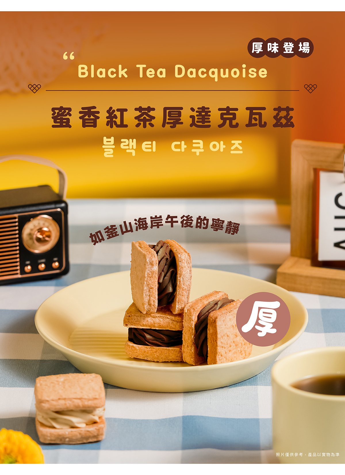 【厚味登場】韓式厚達克瓦茲全新登場!靜靜沉澱的茶香,一如釜山海岸午後的寧靜,餅殼酥脆中帶柔潤,齒間留香彷彿午後啜飲一杯紅茶的靜謐時光,是下午茶甜點、聚會送禮的最佳選擇💯