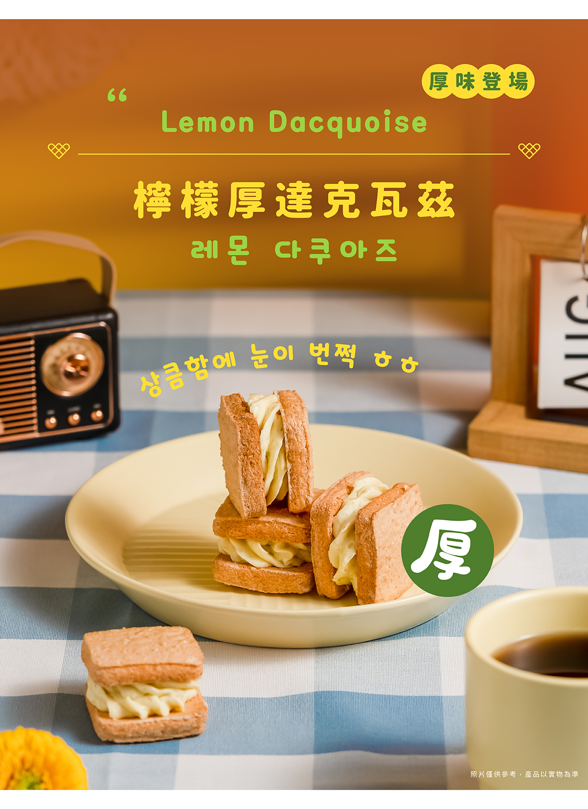 【厚味登場】韓式厚達克瓦茲全新登場!咬一口,濃鬱的口味和清新的香氣充滿口腔,微酸的餡料在口中融化,留下令人愉悅的餘韻,是下午茶甜點、聚會送禮的最佳選擇💯